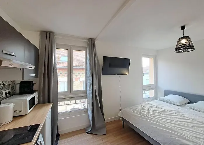 A Bologne, Studio Climatise Apartman apartman Reims közvetlen szívében található az Eglise Saint-Andre közelében. Ennek apartmannak a szobái kávé/teafőzővel, síkképernyős műholdas TV-vel és füstérzékelőket felszereltek.